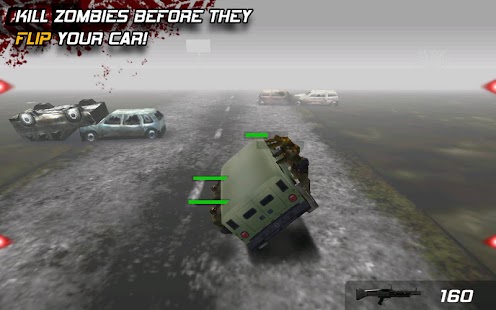 - Zumbis atacam seu carro enquanto você está fugindo, derrube-os/mate-os usando armas ou até mesmo espremendo eles contra outros carros!